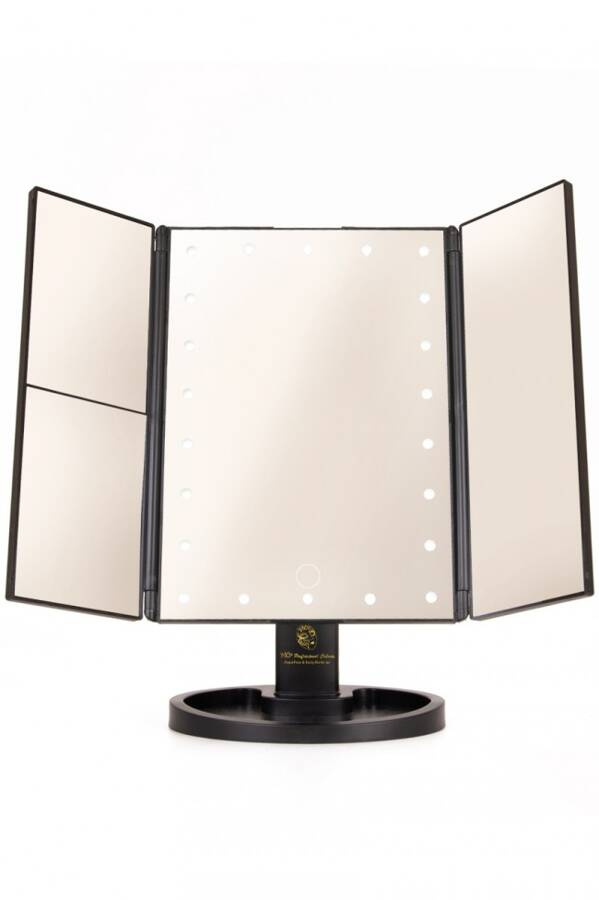 - Wysokiej Jakości Oświetlenie LED: Jasne, białe światło LED, które równomiernie oświetla twarz, pozwalając na precyzyjne i równomierne nakładanie kosmetyków.