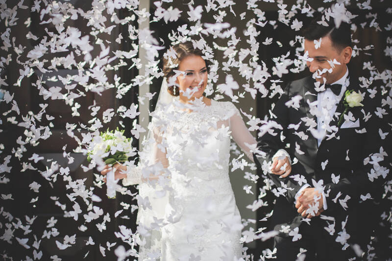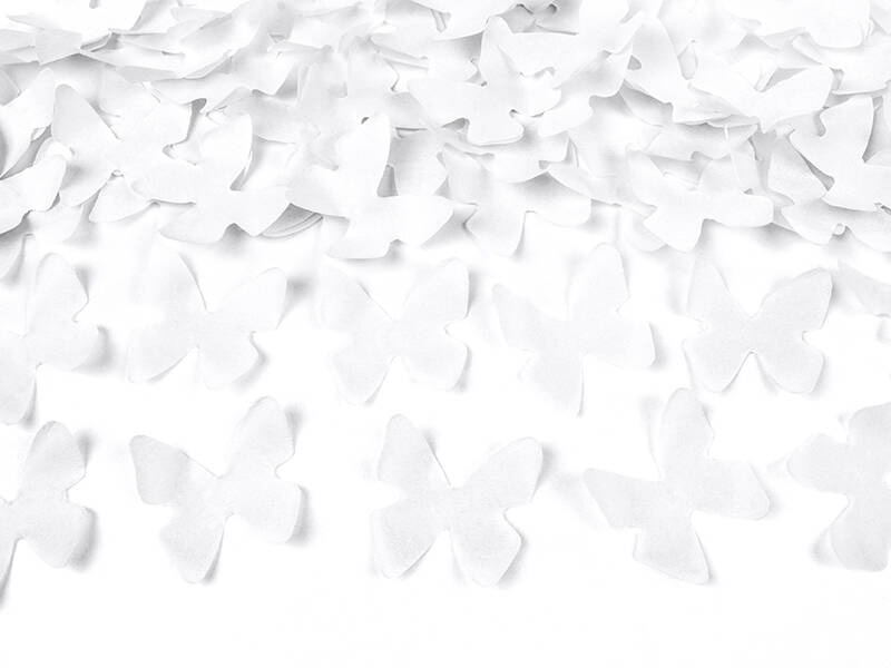 Konfetti wykonane jest z lekkiego, ale trwałego papieru, który delikatnie opada, tworząc efektowny deszcz białych motylków.