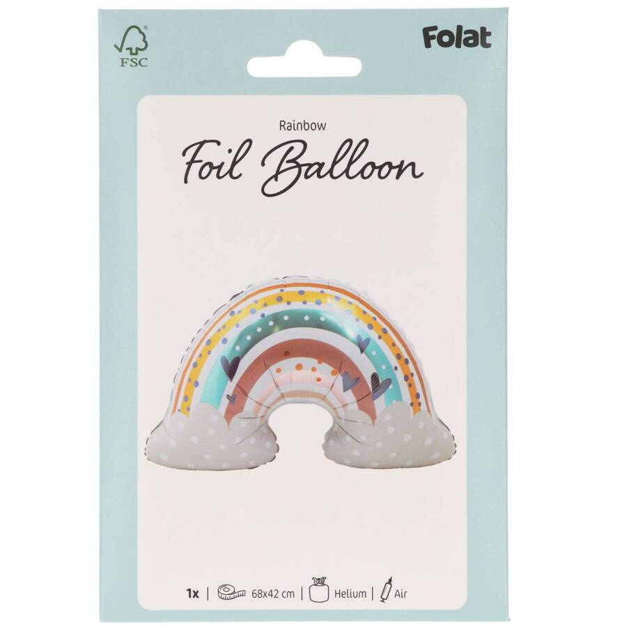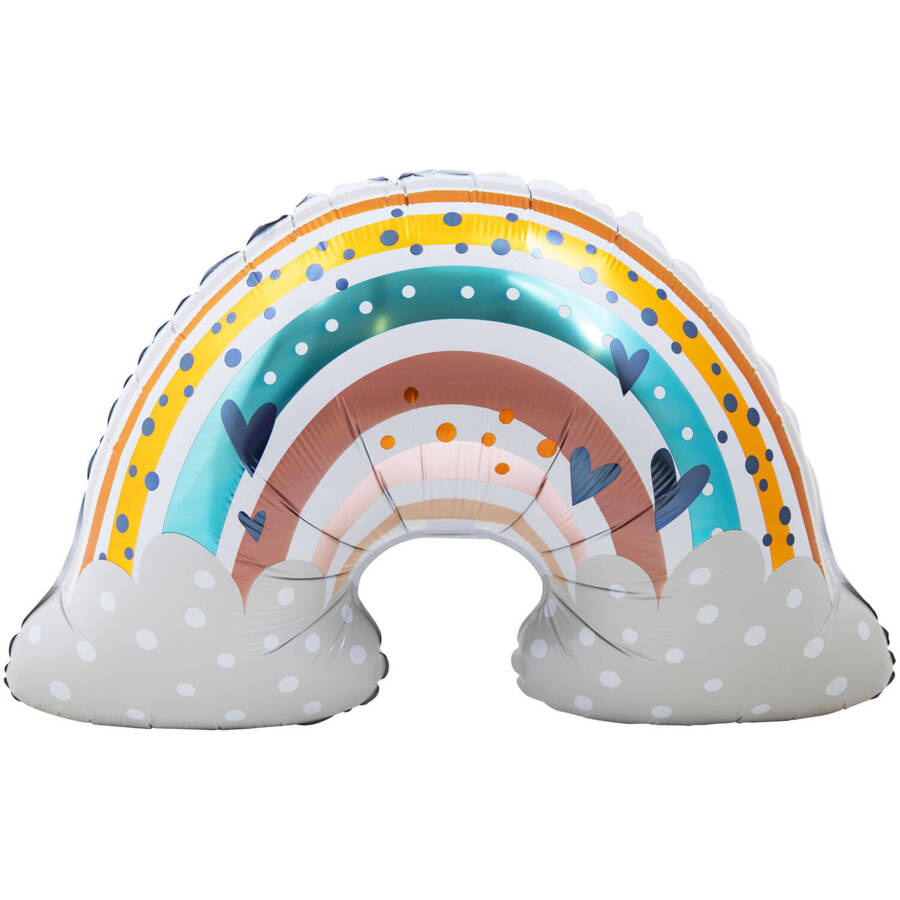 - Balon foliowy w kształcie kolorowej tęczy z chmurkami.