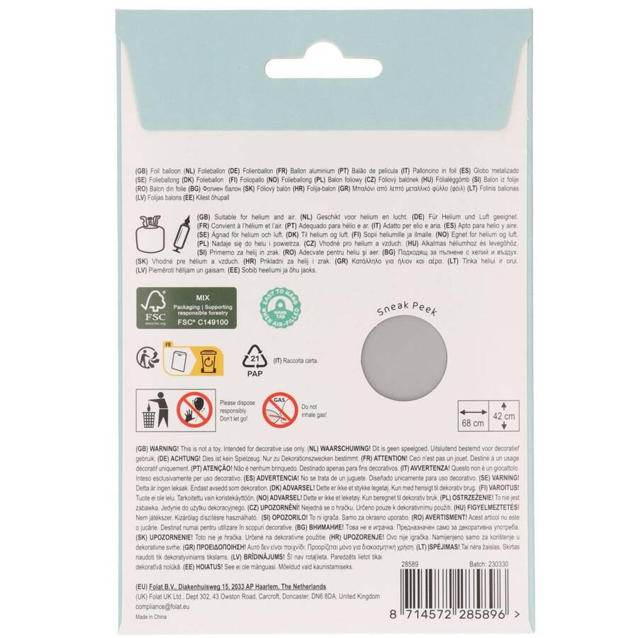 - Balon o wymiarach 68 x 42 cm, który jest wystarczająco duży, aby robić wrażenie, ale na tyle kompaktowy, aby łatwo go umieścić w dowolnym miejscu.