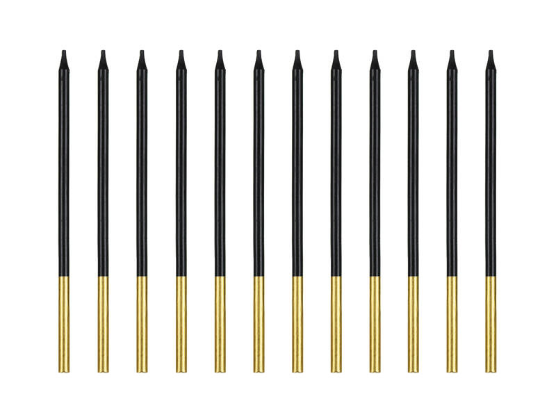 Świeczki urodzinowe długie czarno złote 14 cm 12 szt.