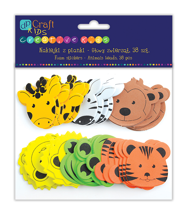 • Naklejki z pianki z motywami głów zwierząt, w kilku wzorach i kolorach. Świetnie nadają się do wszelkiego rodzaju dziecięcej aktywności twórczej. Cena za opakowanie 38 sztuk - mix wzorów.