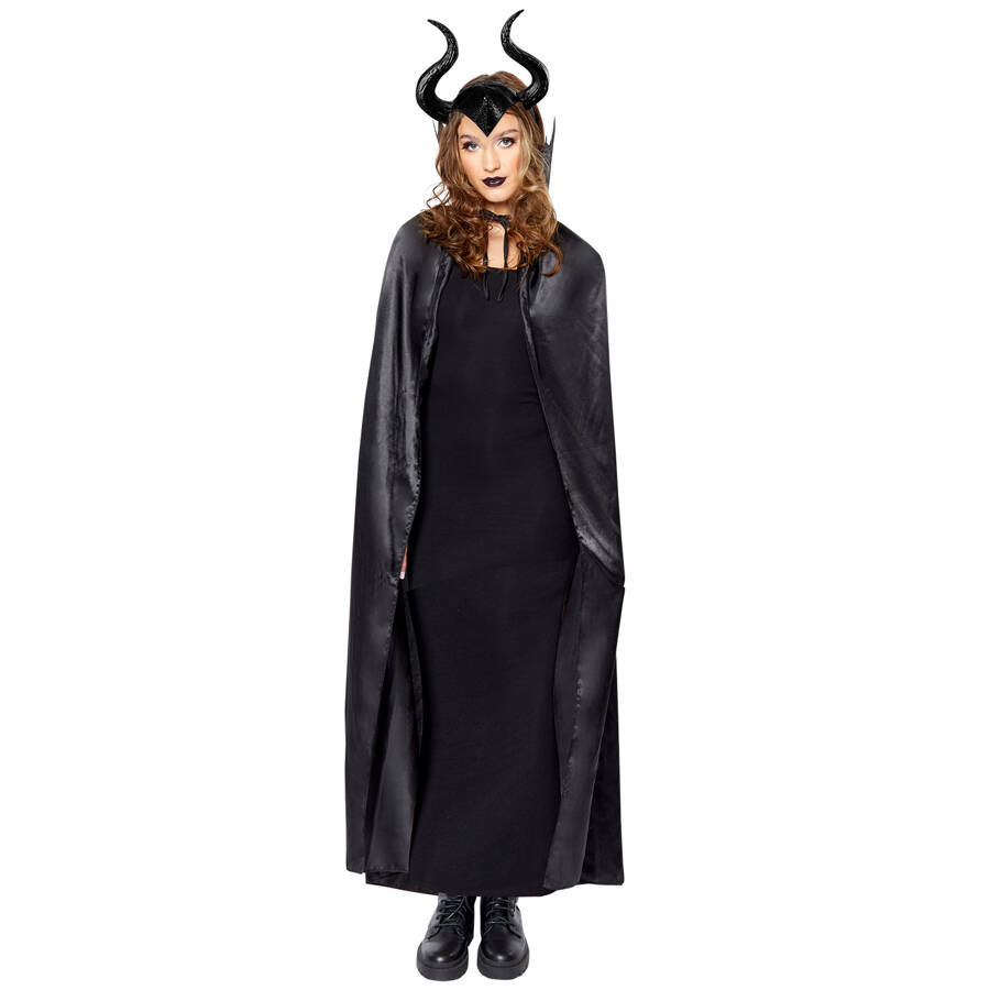 Przemień się w mroczną postać z baśni lub filmu, dzięki naszemu wyjątkowemu zestawowi „Zła Królowa Czarownica”. Ten kompletny strój zawiera elegancką, czarną pelerynę oraz tajemniczą opaskę na głowę, które dodadzą każdemu przebraniu magicznego charakteru.