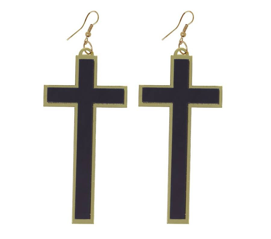 - Kolczyki w kształcie krzyża. Idealne do stroju Zakonnicy na Halloween.