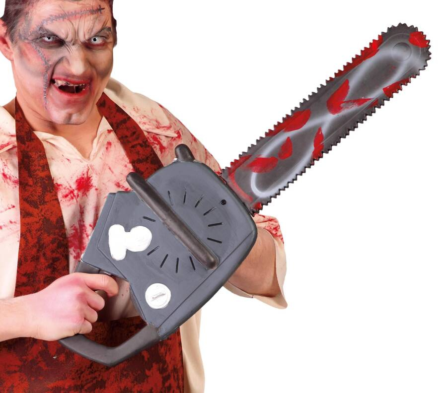 Atrapa piły mechanicznej z czerwonymi plamami imitującymi sztuczną krew. To narzędzie zbrodni udoskonali wiele hallwoeenowych stylizacji, jak i dekoracji, które wzbudzą przerażenie pośród wszystkich uczestników przyjęcia hallwoenowego.