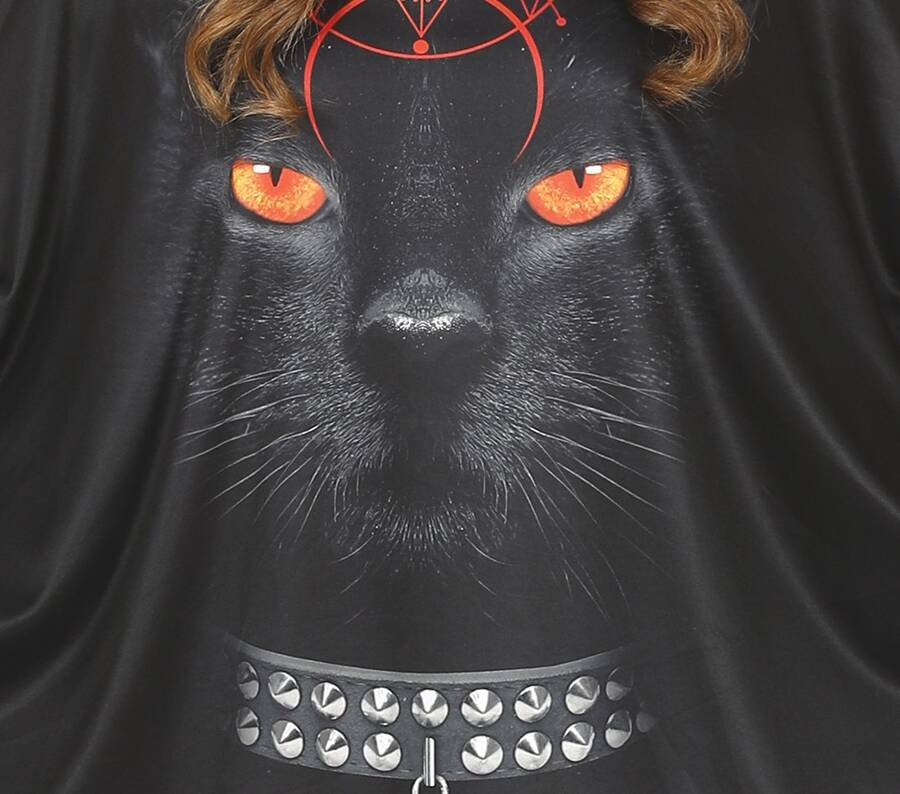 • Jest to luźne poncho w stylu czarnego kota, które można łatwo dopasować do każdego rodzaju sylwetki. Świetnie sprawdza się jako szybki strój na Halloween.