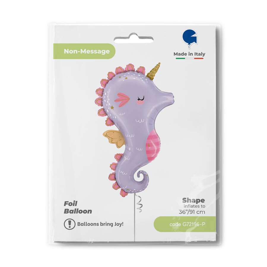 Balon można napełnić powietrzem lub helem, aby uzyskać unoszącą się dekorację, która idealnie sprawdzi się zarówno w pomieszczeniach, jak i na świeżym powietrzu. Dzięki realistycznemu odwzorowaniu konika morskiego i efektownym fioletowym odcieniom, stanie się wyjątkową ozdobą każdej aranżacji.
