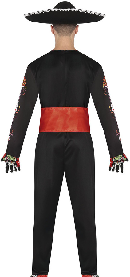 - Strój męski w stylu meksykańskim kościotrupa Mariachi, doskonały na imprezy halloweenowe lub te z okazji Dia de los Muertas.