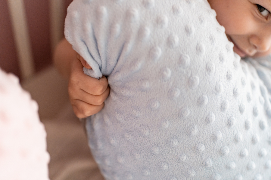 Starannie wykonana, wielofunkcyjna poduszka z delikatnego pluszu minky oraz bawełny bezpiecznej dla dzieci, wypełniona bezpieczną kulką silikonową.