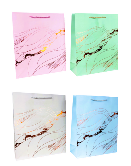 Przedstawiamy naszą wyjątkową torebkę prezentową z delikatnymi złotymi zdobieniami, w 4 kolorach do wyboru.