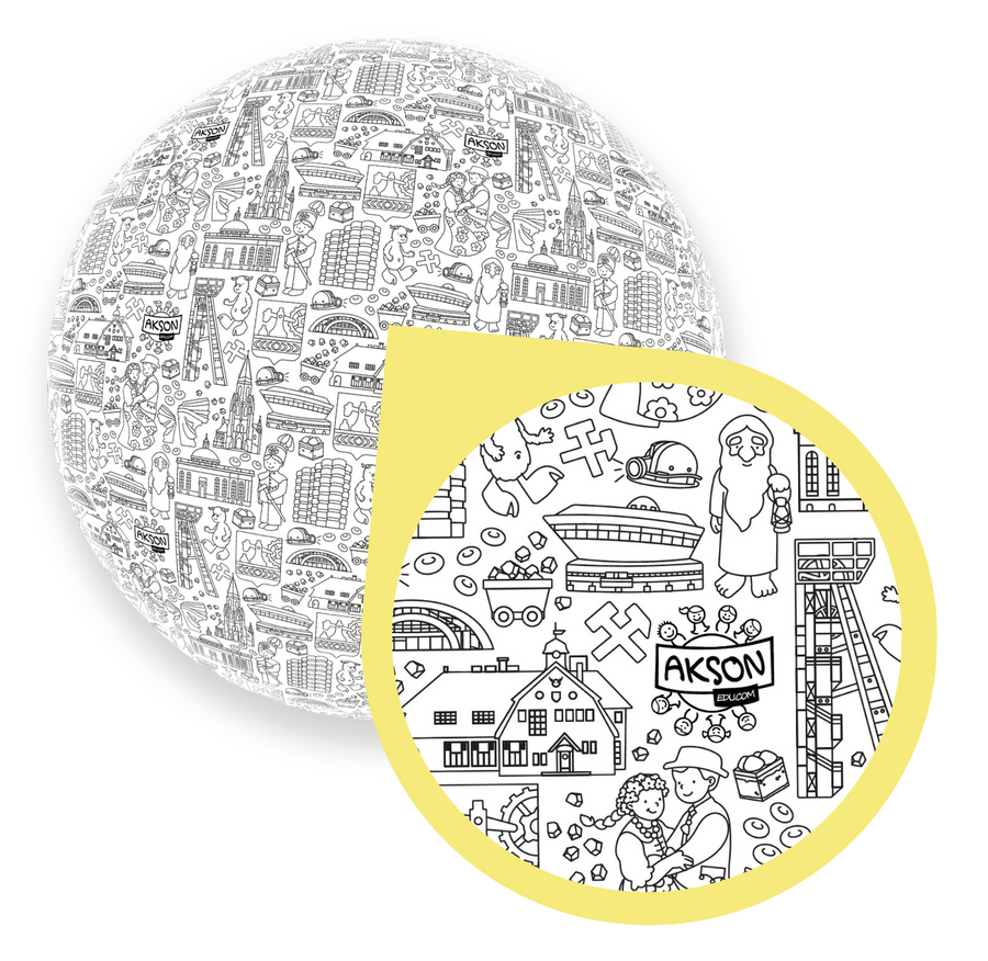 Rozbudź kreatywność i zabierz się za kolorowanie piłki, która przeniesie Cię w sam środek industrialnego serca Śląska! Nasza piłka przedstawia charakterystyczne dla Katowic zabytki i symbole, takie jak Spodek, Pomnik Powstańców Śląskich, wieże szybowe kopalni, czy modernistyczną architekturę miasta.