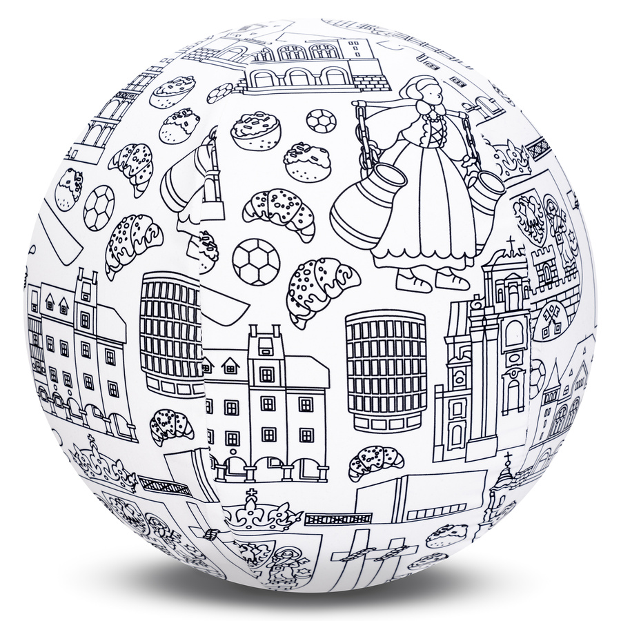 Zapraszamy do kreatywnej zabawy z naszą piłką do kolorowania, która przeniesie Cię w wyjątkowy klimat Poznania! Piłka ozdobiona jest ilustracjami najbardziej rozpoznawalnych symboli miasta, takich jak Ratusz z koziołkami, Katedra na Ostrowie Tumskim, Stary Browar czy Malta.