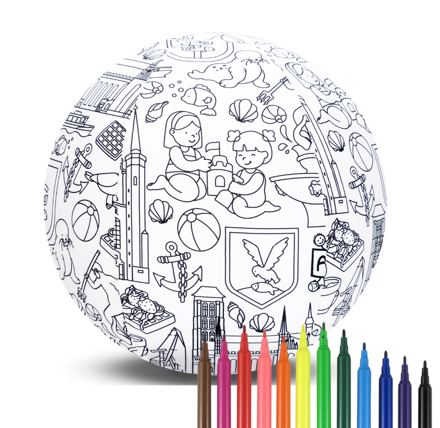 Przenieś się na wybrzeże Bałtyku i odkryj urok Trójmiasta z naszą piłką do kolorowania! Piłka przedstawia najbardziej znane symbole Gdańska, Gdyni i Sopotu, takie jak Fontanna Neptuna, Żuraw nad Motławą, Skwer Kościuszki, Dar Pomorza, Latarnia czy słynny budynek Bazyliki Mariackiej.