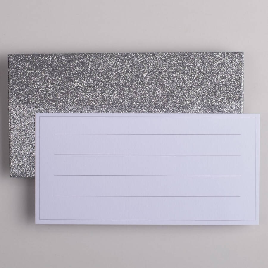 Koperta podarunkowa z bilecikiem srebrna brokatowa 17x9 cm
