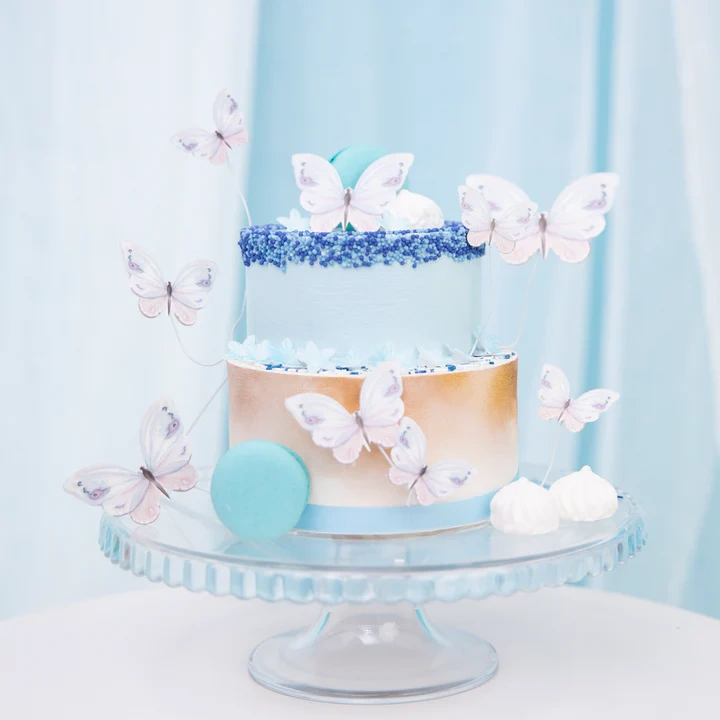 - Urocze toppery w kształcie motylków, wraz z elastycznymi pikerami - idealne do babeczek, tortów i ciast. Cena za opakowanie 9 szt. Do samodzielnego złożenia.
