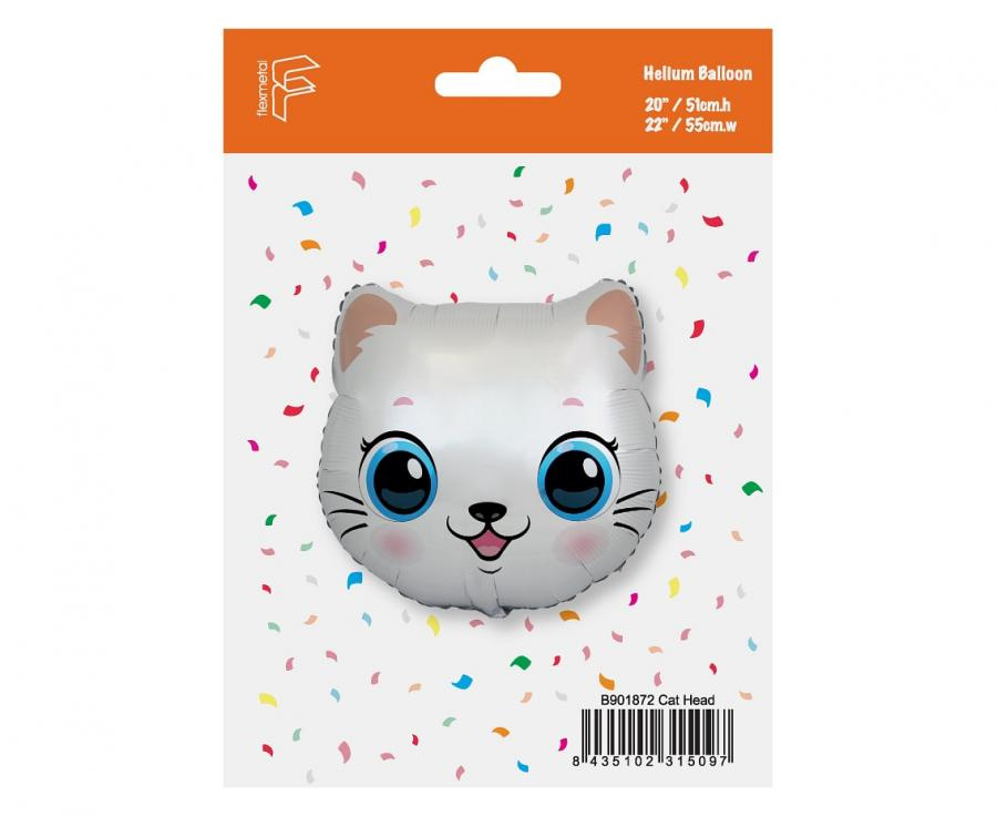- Balon foliowy w kształcie główki białego kotka. Do napełnienia helem lub powietrzem.