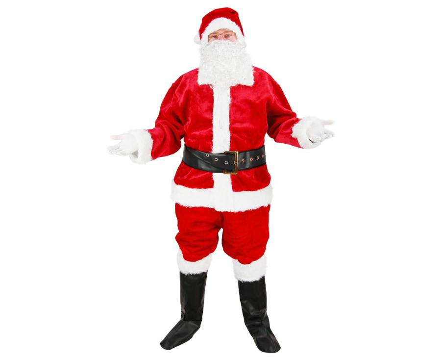 • Bogato wyposażony zestaw Świętego Mikołaja - rozmiar uniwersalny, wszystko, czego potrzebujesz, by stać się Mikołajem. W zestawie czapka, bluza, spodnie, broda, pasek, nakładki na buty, rękawiczki, okulary. Cena za komplet.