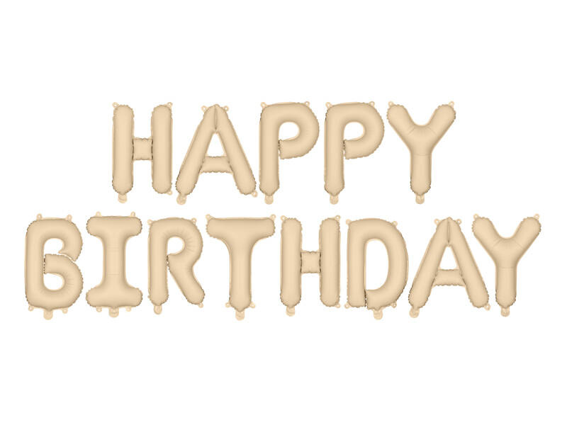 Napis z balonów HAPPY BIRTHDAY foliowy pastel beżowy