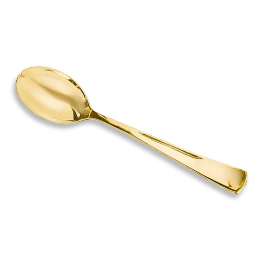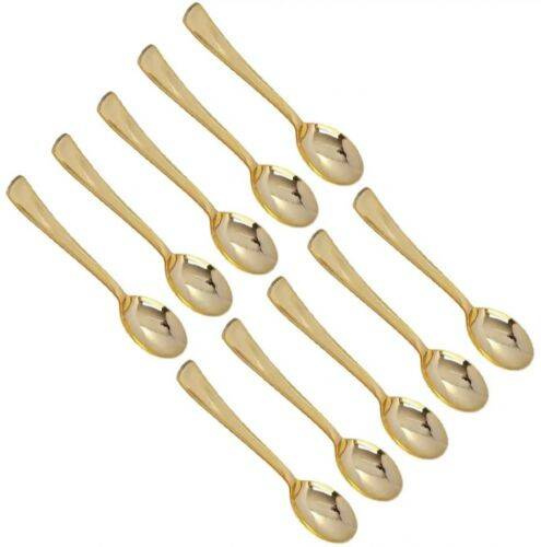 Zestaw zawiera 10 plastikowych łyżek o pięknym złotym wykończeniu, które dodadzą blasku i elegancji Twojej imprezie.