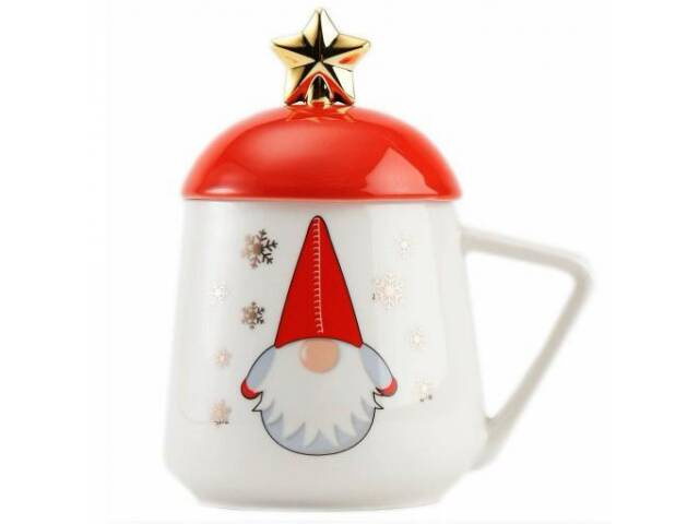 - Uroczy, świąteczny ceramiczny kubek ze skrzatem.