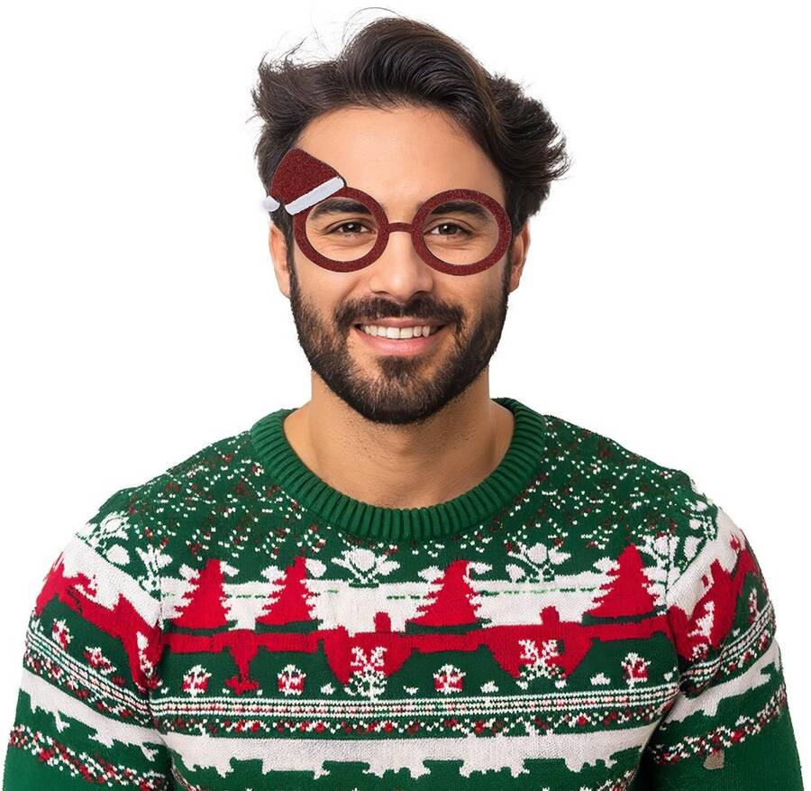 Czerwone okulary z czapeczką Mikołaja na Boże Narodzenie to zabawny i pełen uroku gadżet, który wprowadzi każdego w świąteczny nastrój. Oprawki w intensywnym, czerwonym kolorze posypane błyszczącym brokatem. Po prawej stronie, na górze mają zamontowaną miniaturową czapkę Świętego Mikołaja, ozdobioną białym pomponem i futerkiem, co dodaje okularom wyjątkowego charakteru.