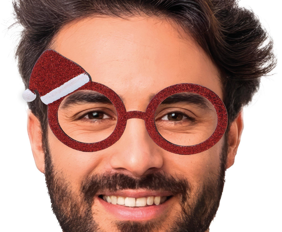 Czerwone okulary z czapeczką Mikołaja na Boże Narodzenie