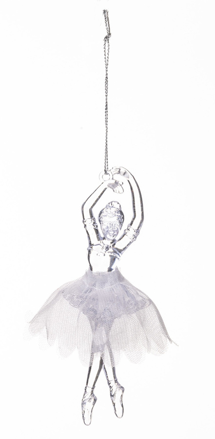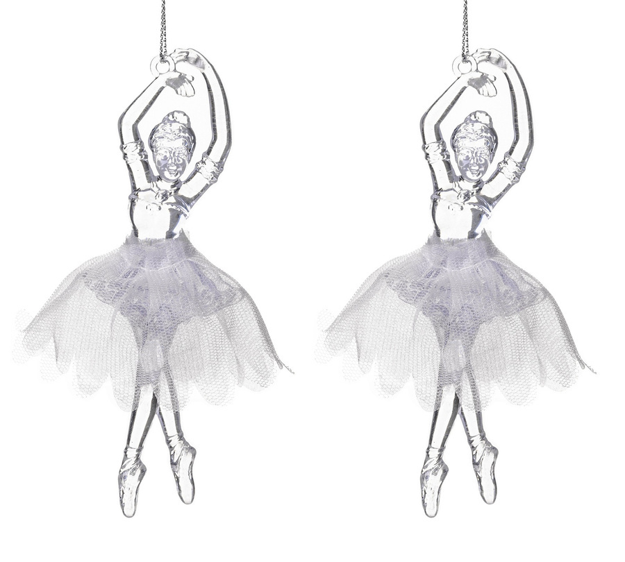 - przepiękne delikatne zawieszki na choinkę w kształcie baletnic. Transparentne zawieszki ozdobione białym tiulem.