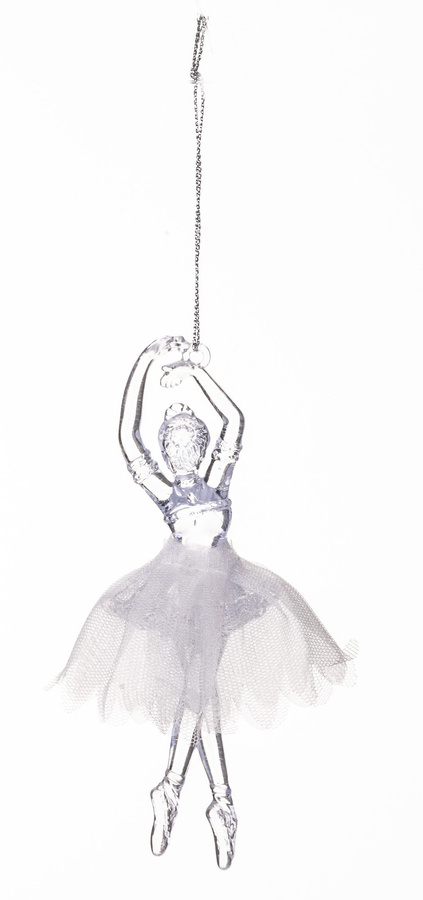 Te wyjątkowe zawieszki są inspirowane subtelnym pięknem baletu, przyciągając uwagę delikatnością wykonania i finezyjnym stylem. Każda baletnica jest starannie wykonana z lekkiego, transparentnego materiału, a jej sukienka ozdobiona wykonana jest z białego tiulu. Zawieszki pięknie się mienią odbijając światło choinkowych lampek.