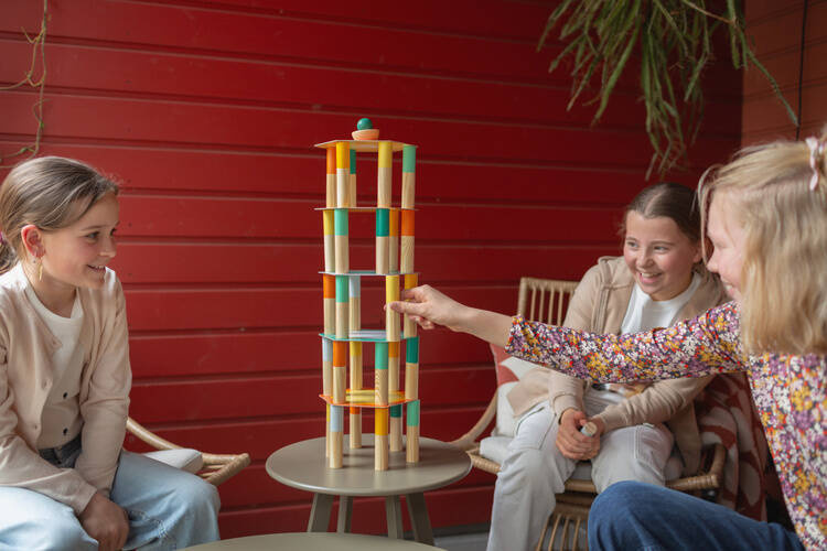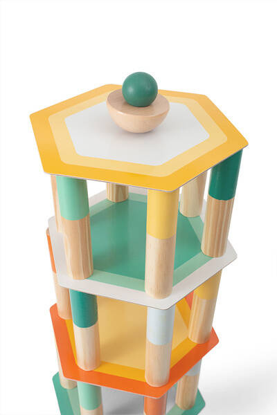 Drewniana gra zręcznościowa - Balans XL to wspaniała zabawa dla pasjonatów gier zręcznościowych. Należy zbudować wielką i stabilną wieżę ze wszystkich dostępnych elementów, a następnie w każdy z graczy po kolei wyjmuje po jednym drewnianym klocku tak, by wieża nie runęła i aby kulka znajdująca się na samym szczycie nie spadła.
