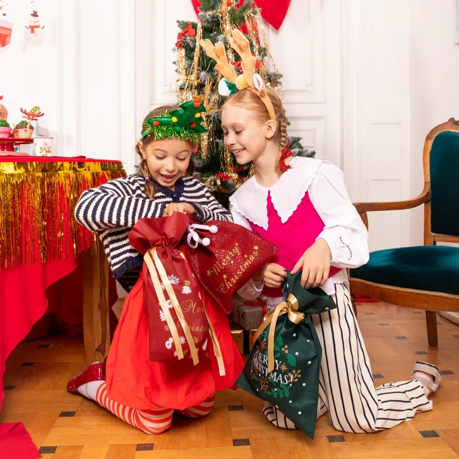 Dekoracyjna torebka z tkaniny z autorskim dekorem- Wesołych Świąt, pozwoli łatwo, szybko i nietuzinkowo zapakować każdy prezent.