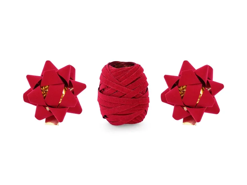 Elegancki zestaw dekoracyjny w kolorze czerwonym, idealny do ozdabiania prezentów, tworzenia dekoracji świątecznych lub aranżacji wnętrz.