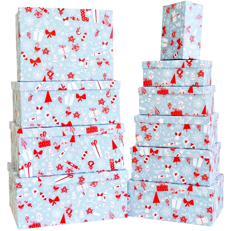 • Świąteczne, prostokątne pudełka na prezenty, dostępne w kilku rozmiarach. Idealnie jako prezent na Mikołaja lub pod choinkę. Cena za sztukę.