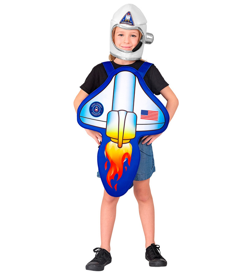 - Strój składa się z piankowej kamizelki i hełmu astronauty.