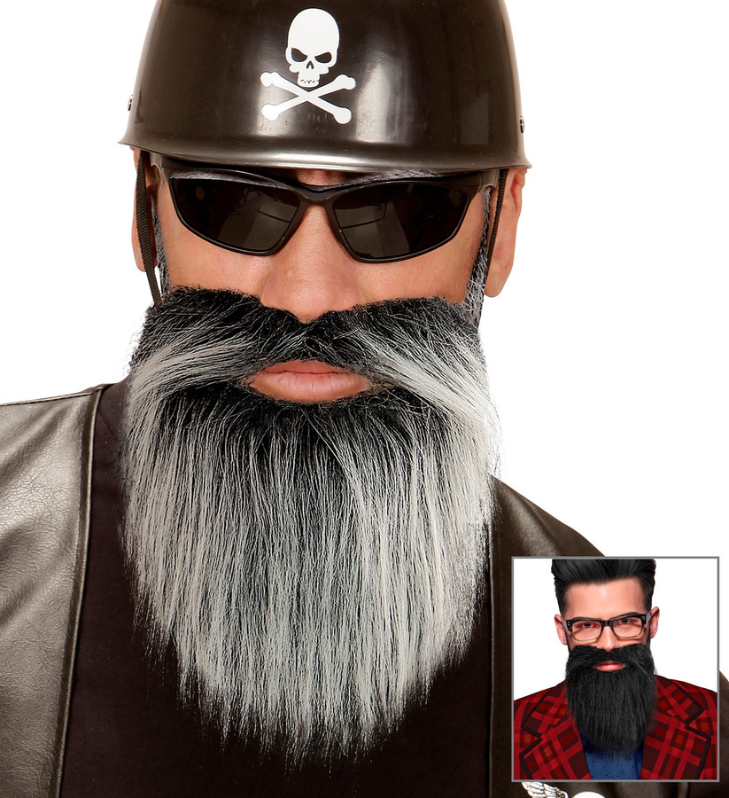 - Zestaw broda i wąsy, dwustronne. Siwe i czarne.