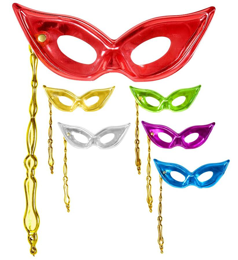 • Maska karnawałowa na oczy umieszczona na wygodnym uchwycie ułatwiającym trzymanie maski.
