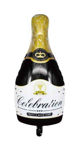 Szampan butelka balon foliowy czarno złoty 44x86 cm