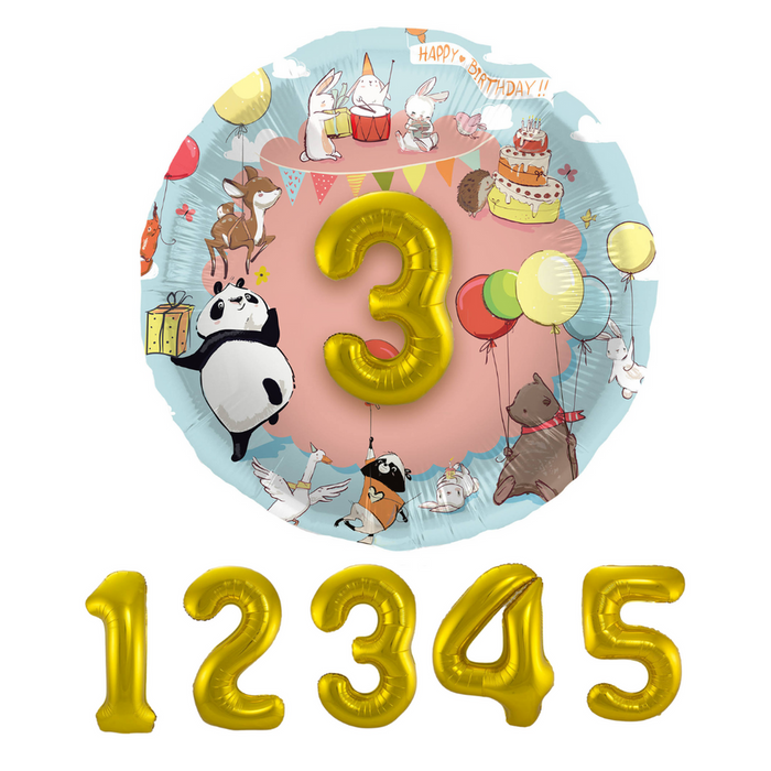 Wyjątkowy okrągły balon z kolorowym nadrukiem zwierzątek. W skład zestawu wchodzą również balony cyferki (1-5) dzięki którym spersonalizujesz balon na urodziny dziecka. Wybraną cyferkę wystarczy nakleić na balon a efekt będzie zachwycający.