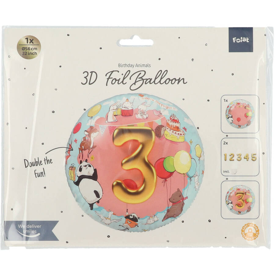 Balon Foliowy urodzinowy trójwymiarowy 56 cm + liczby 1-5