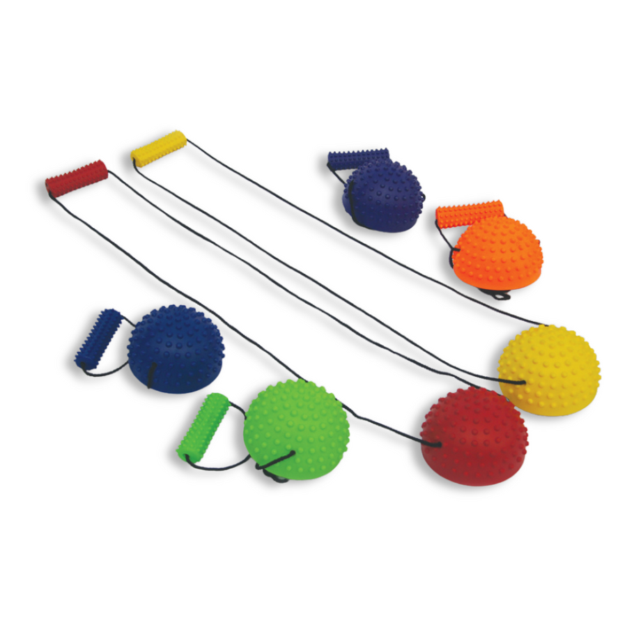 Szczudła sensoryczne półkule z wypustkami to innowacyjne narzędzie do ćwiczeń równowagi, koordynacji ruchowej i stymulacji sensorycznej. Składają się z półkul ze sznurkami i uchwytami wykonanych z elastycznego, trwałego materiału, które są pokryte miękkimi, gumowymi wypustkami.