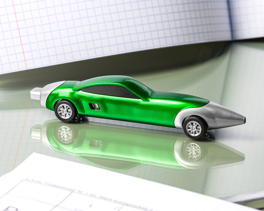 - Unikalny wygląd: Długopis w kształcie sportowego auta – prawdziwa gratka dla fanów motoryzacji.