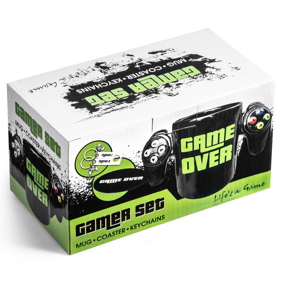 ZESTAW gracza GAME OVER kubek, podkładka, breloki