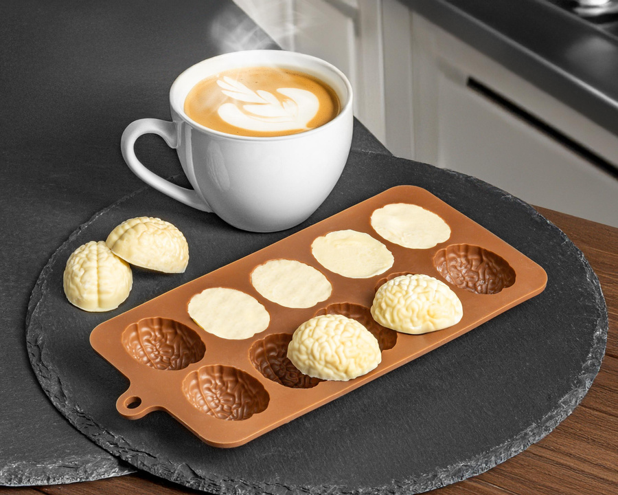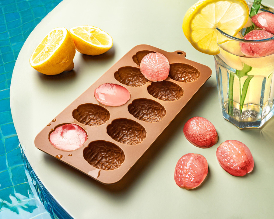 - Łebski pomysł na orzeźwienie czy niebanalne słodkości :) Dodaj szczyptę humoru do swoich drinków lub przekąsek z tą niezwykłą silikonową foremką! Dzięki niej stworzysz lodowe kostki, czekoladki lub żelki w kształcie małych mózgów.