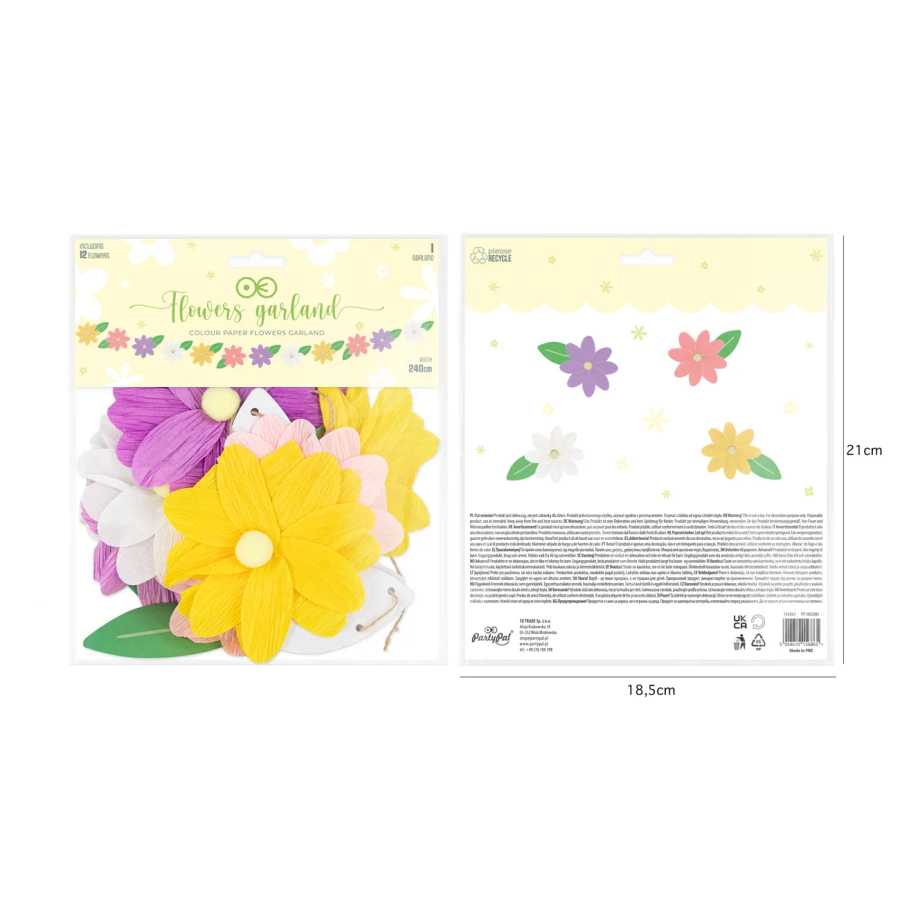 Dekoracyjna girlanda z kolorowymi kwiatkami to doskonały dodatek do wiosennych i wielkanocnych aranżacji. Jej żywe barwy i uroczy design wprowadzą radosny klimat do wnętrz oraz plenerowych przyjęć.