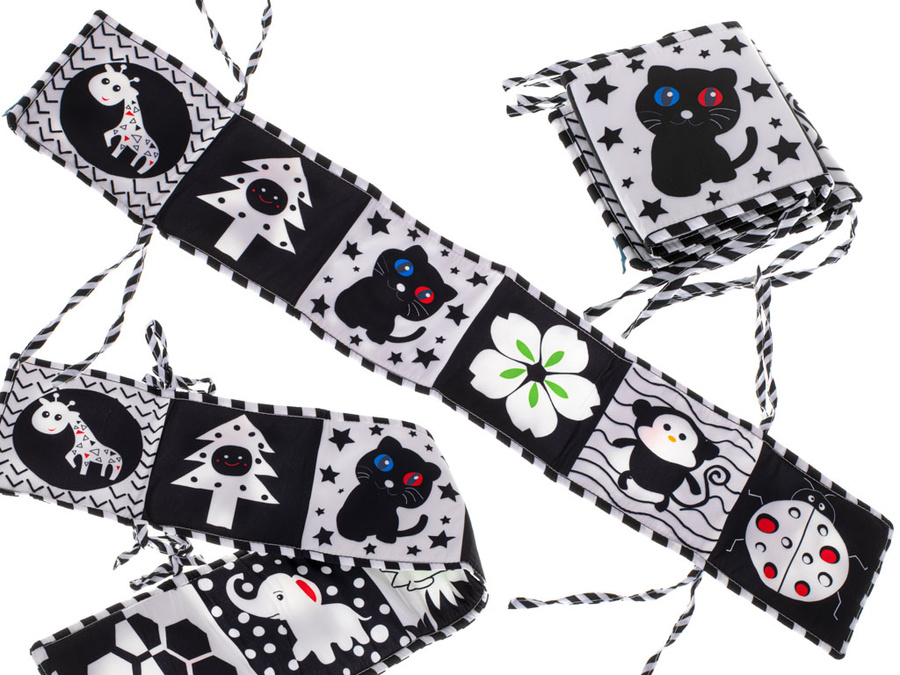 Kontrastowe wzory przyciągną uwagę maluszka i zachęcą do zabawy.
