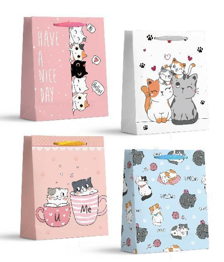 Torebka prezentowa z motywem uroczych kolorowych kotków i zwierzątek to doskonały sposób na zapakowanie prezentu dla miłośniczki zwierząt. Dostępna w czterech różnych wzorach do wyboru sprawi, że każdy prezent będzie wyglądał wyjątkowo.