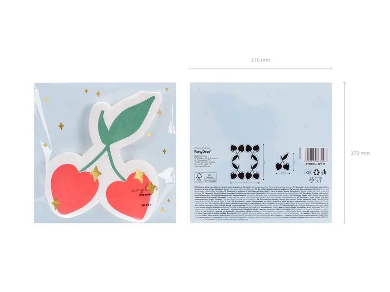 - Efektowny design – serwetki w kształcie dwóch czerwonych wiśni