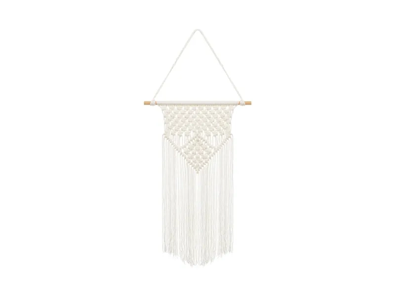 Makrama, ozdoba na ścianę złamana biel, 30x49cm