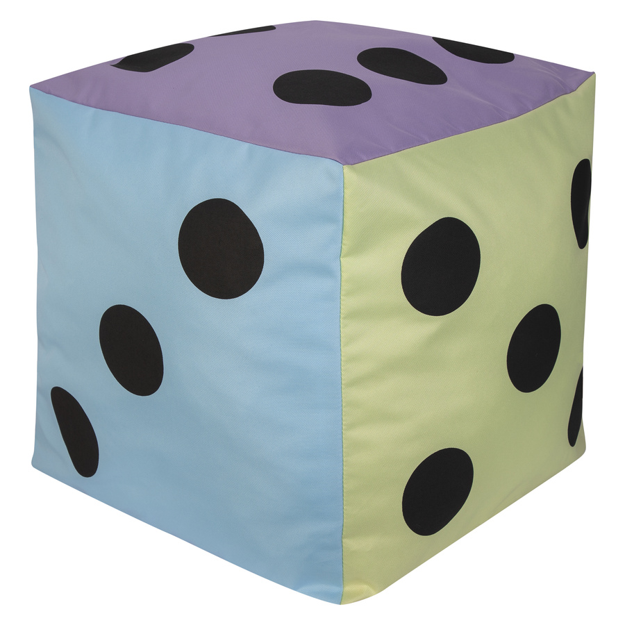 Kostka posiada sześć różnych kolorowych ścian, każda z inną liczbą kropek, co pobudza wyobraźnię i rozwija umiejętności poznawcze. Dzięki miękkiemu wypełnieniu jest nie tylko bezpieczna, ale także przyjemna w dotyku, co umożliwia wygodne siedzenie, leżenie, turlańce czy zabawy w plenerze. Jest to również doskonała pomoc do organizacji gier zespołowych i integracyjnych, sprzyjających aktywności fizycznej w grupach.