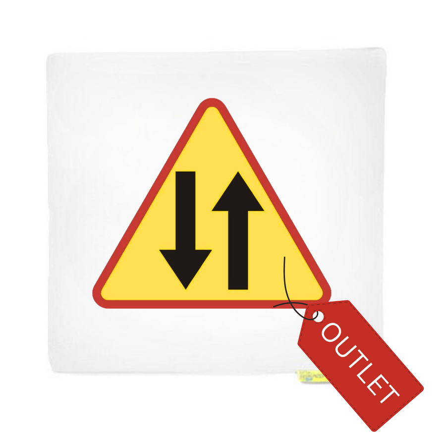 Poduszka kwadratowa znak Ostrzegawczy ODCINEK JEZDNI DWUKIERUNKOWY 1 szt. - OUTLET - skaza nadruku