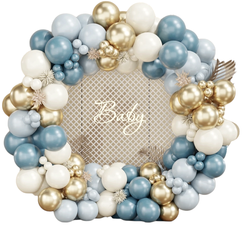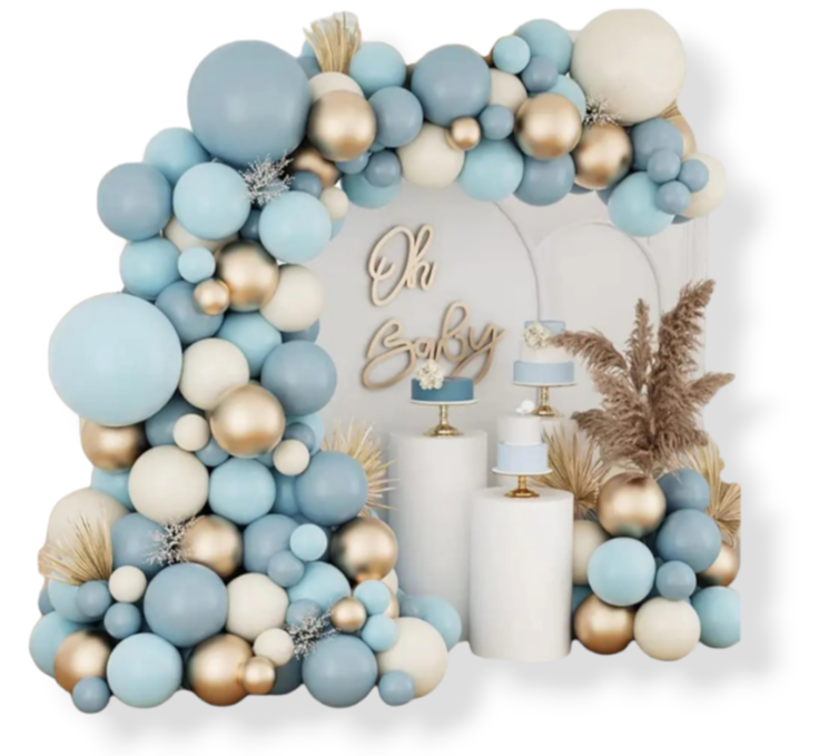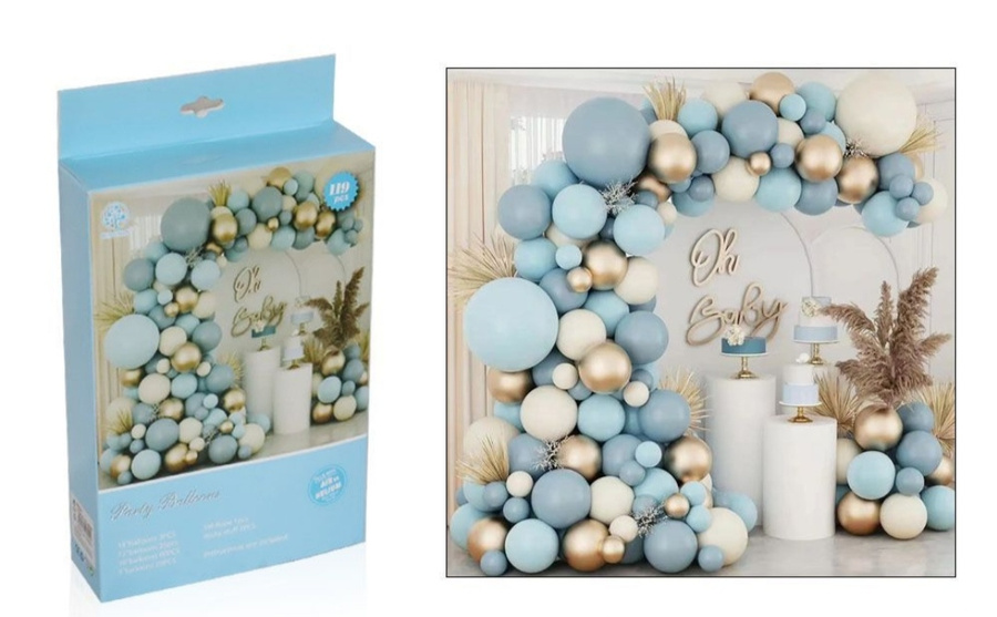 - Gotowy zestaw do stworzenia przepięknej girlandy balonowej w kolorze beżowo niebieskim.